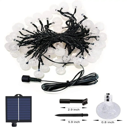 2 Guirnaldas de luces con panel solar - Bombillo hielo 7m 50 luces (TOTAL 14m 100 luces)