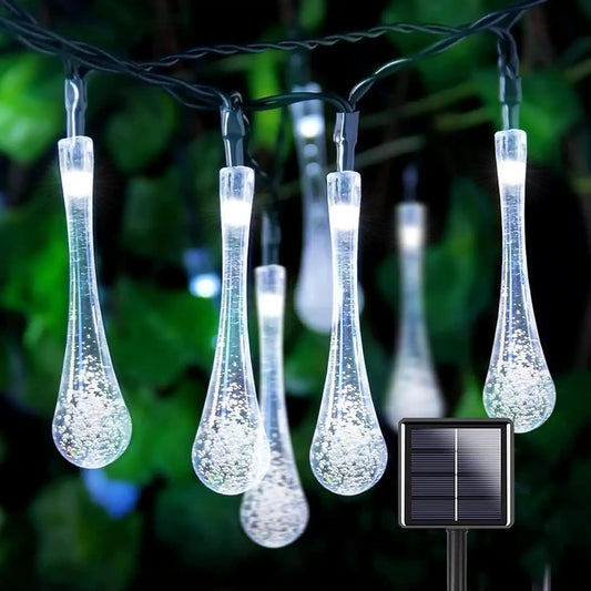 2 Guirnaldas de luces con panel solar X2: Gotas 7m 50 luces (TOTAL 14m 100 luces)