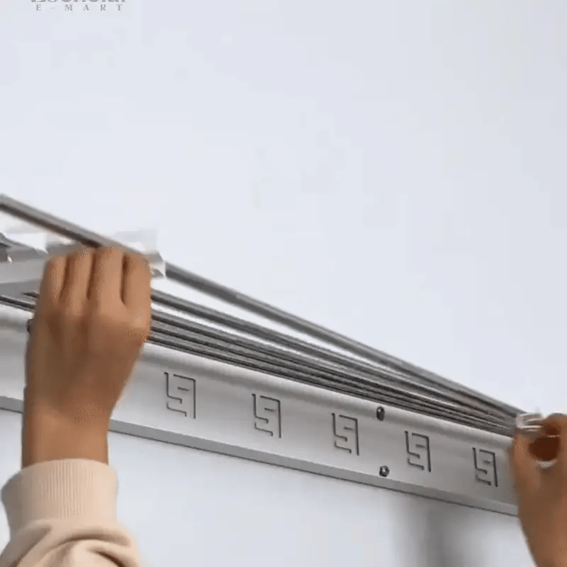 Para mayor seguridad, fija el tendedero en superficies sólidas como paredes firmes de cemento, ladrillo o madera, evitando instalarlo solo en paneles de yeso.